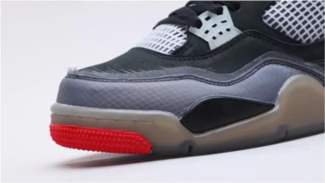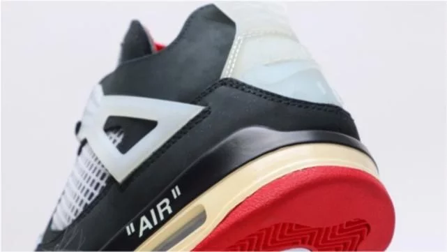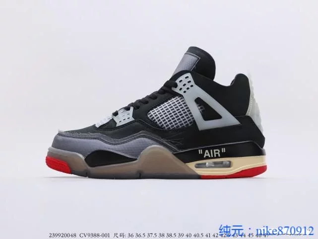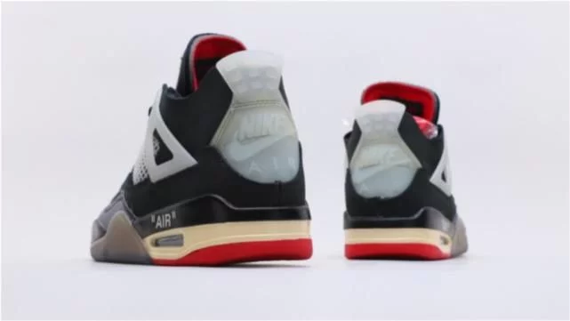 全新莆田版本乔丹aj4联名OW蝉翼黑灰红开箱!最废鞋的上脚展示。