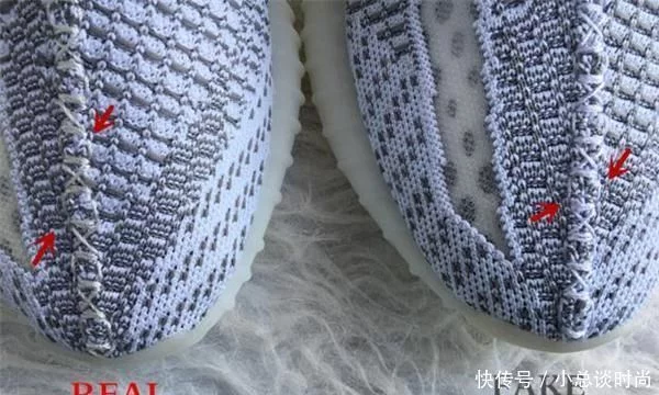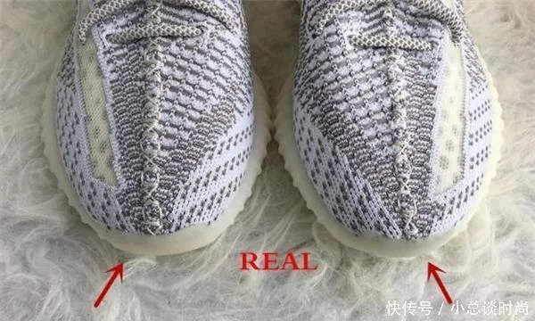 鞋头线,REAL线呈淡黄色,晚上会有点偏白,白天阳光下偏黄,FAKE鞋头线用的是以前纯白配色的线,颜色偏白。